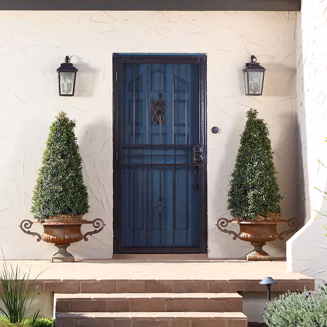 The Gatehouse Covington Black Steel Security Door offers superior protection and timeless style. Its heavy-duty steel construction is powder-coated in a sleek black finish, ensuring resistance to rust and weathering. Featuring a classic design with ornate details, this door adds a sophisticated touch to your entryway while enhancing home security. Perfect for those who want both beauty and strength in a single product.